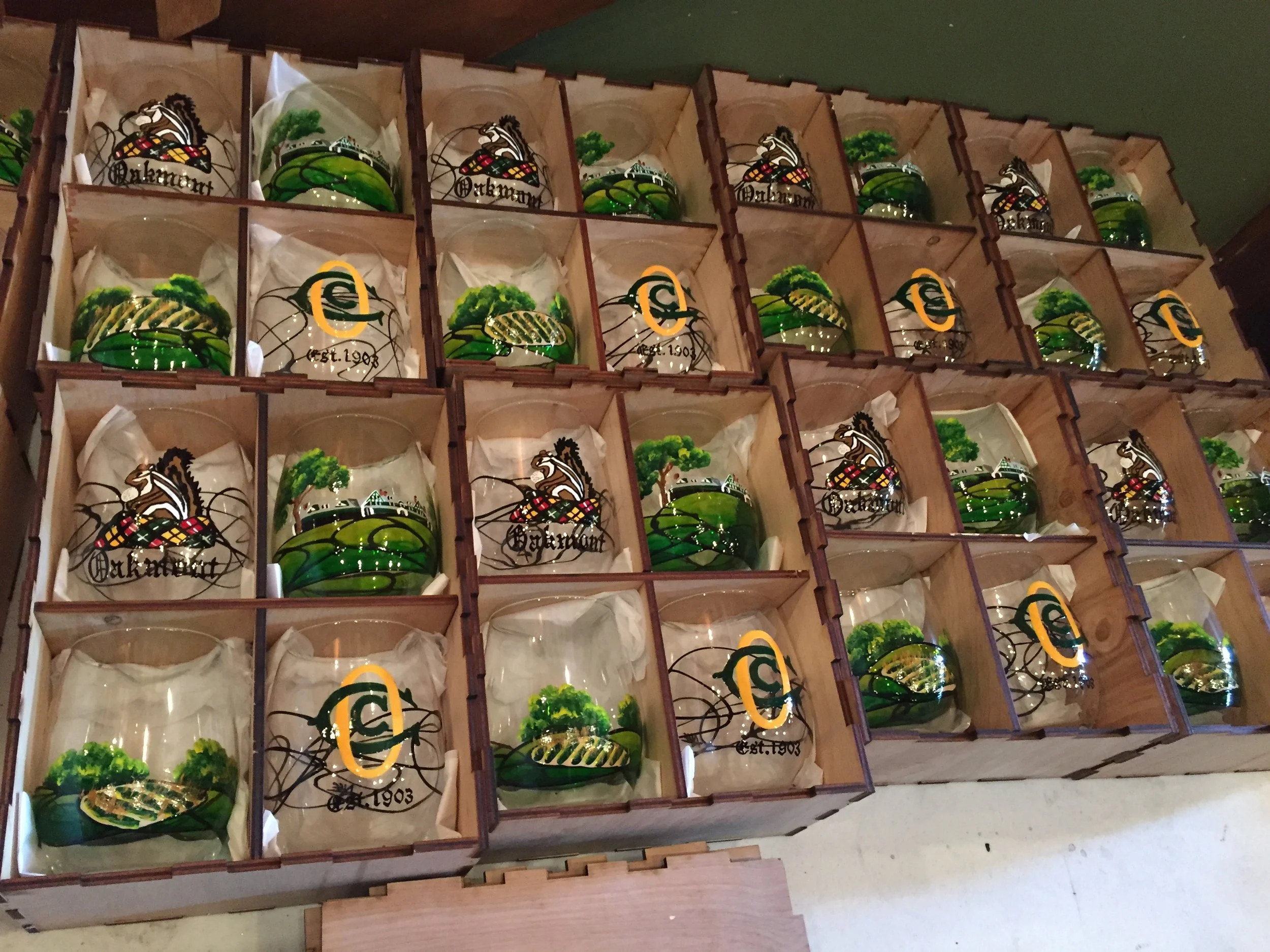 We have painted glassware for Primanti Brothers, Sheetz, U.S. Golf Association, Oakmont Country Club